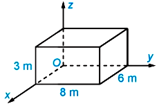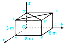 Một phòng học có thiết kế dạng hình hộp chữ nhật với chiều dài là 8m , chiều rộng là 6 m và chiều cao là 3 m . Một chiếc đèn được treo tại chính giữa trần nhà của phòng học. Xét hệ trục toạ độ Oxyz có gốc \(O\) trùng với một góc phòng và mặt phẳng \((Oxy)\) trùng với mặt sàn, đơn vị đo được lấy theo mét. Hãy tìm toạ độ của điểm treo đèn.