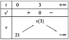 Một chất điểm chuyển động theo phương trình \(S = - {t^3} + 9{t^2} + 21t + 9\) trong đó \(t\) tính bằng giây và \(S\) tính bằng mét. Tính thời điểm \(t\) mà tại đó vận tốc chuyển động của vật đạt giá trị lớn nhất.