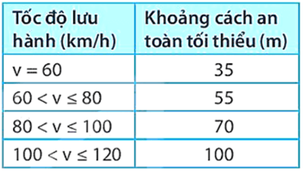 a) Dựa vào bảng bên, em hãy cho biết khoảng cách an toàn đối với xe ô tô chạy với tốc độ 90 km/h là bao nhiêu?