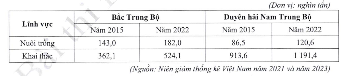Dựa vào bảng số liệu, hãy chọn nhận xét đúng về ngành thuỷ sản của Bắc Trung Bộ và Duyên hải