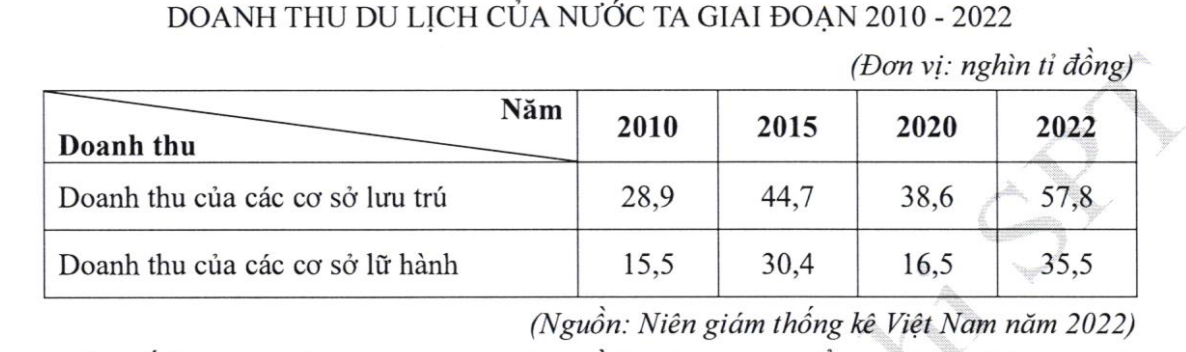 Dựa vào bảng số liệu, nhận định nào sau đây đúng về tình hình phát triển ngành du lịch của nước ta giai đoạn 2010 - 2022?