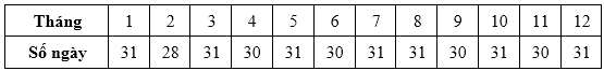 (tham khảo bảng sau cho biết số ngày của mỗi tháng trong năm không nhuận)