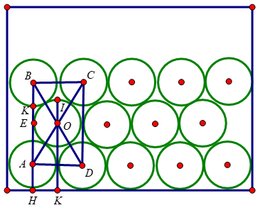 Một hộp đựng phấn hình hộp chữ nhật có chiều dài \(30{\rm{cm}}\), chiều rộng \(5{\rm{cm}}\) và chiều cao \(6{\rm{cm}}\). Người ta xếp thẳng đứng vào đó các viên phấn giống nhau, mỗi viên phấn là một một khối trụ có chiều cao \(h = 6{\rm{cm}}\)và bán kính đáy \(r = \dfrac{1}{2}{\rm{cm}}\).