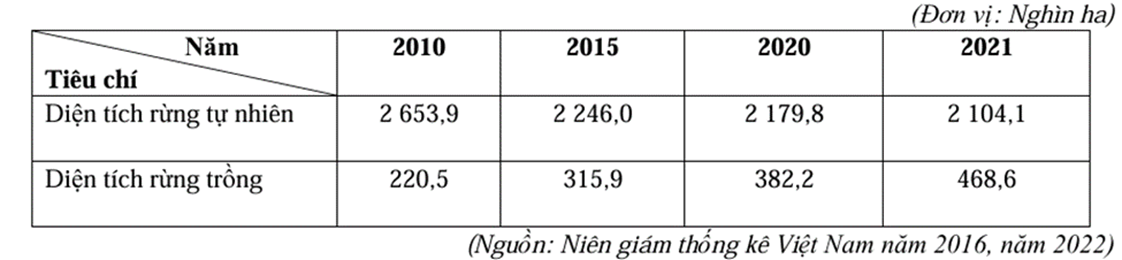 Cho bảng số liệu: DIỆN TÍCH RỪNG VÙNG NAM TRUNG BỘ GIAI ĐOẠN 2010 - 2021 Căn cứ