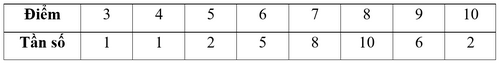 Điểm kiểm tra môn Toán giữa học kì 1 lớp 9 Torun cho bởi bảng sau:Tần số xuất hiện