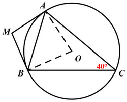 Cho tam giác \(ABC\) nội tiếp đường tròn \(\left( O \right)\). Gọi \(M\) là giao điểm các tiếp tuyến của \(\left( O \right)\) tại \(A\) và \(B\). Biết \(\angle {ACB} = {40^0}\). Khi đó \(\angle {AMB}\) bằng: