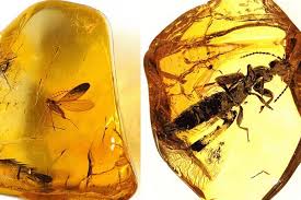 (3) Xác sâu bọ được phủ kín trong nhựa hổ phách còn giữ nguyên màu sắc.