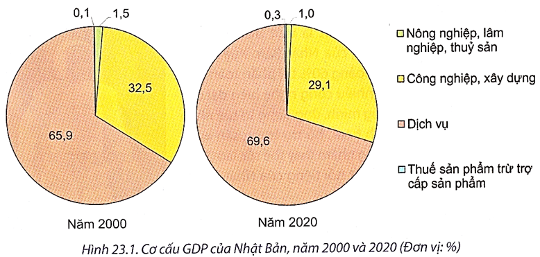 | a) Ngành dịch vụ chiếm tỉ trọng cao nhất trong cơ cấu GDP của Nhật Bản. | ||