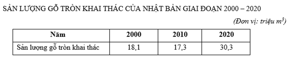 Tính tốc độ tăng trưởng sản lượng gỗ tròn của Nhật Bản năm 2020 so với năm 2000? (làm tròn kết quả đến hàng đơn vị của %)