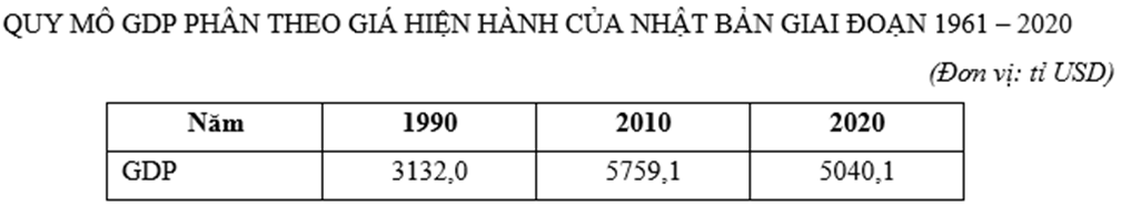 Cho bảng số liệu: GDP của Nhật Bản năm 2020 gấp bao nhiêu lần GDP năm 1990? (Làm