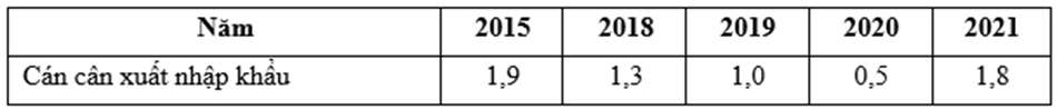 | c) Cán cân xuất nhập khẩu có sự thay đổi qua các năm, thấp nhất là năm 2020. | ||