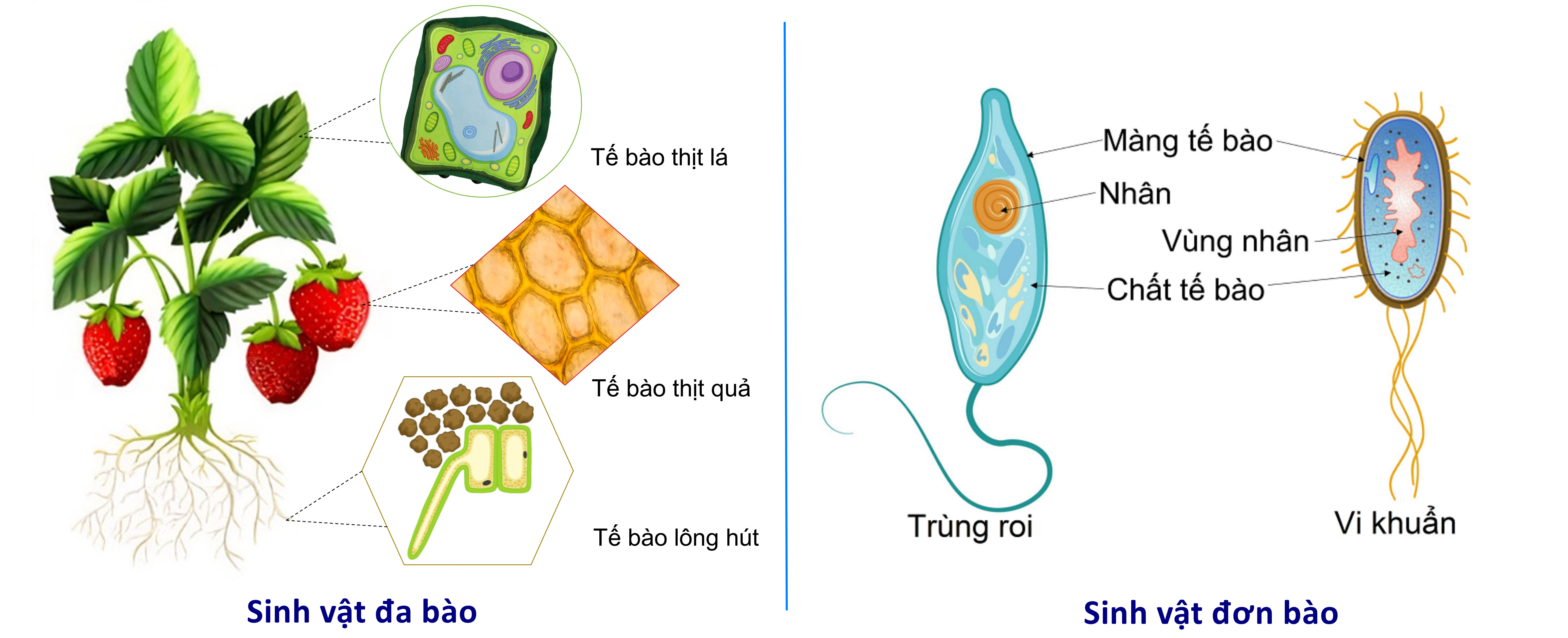Phân biệt sinh vật đơn bào và sinh vật đa bào.