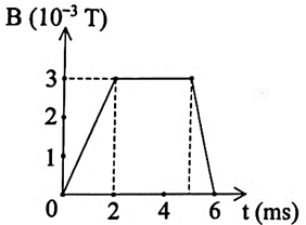 Từ trường xuyên qua một vòng dây tròn có bán kính 10cm thay đổi theo thời gian như hình vẽ bên. Biết từ trường vuông góc với mặt phẳng vòng dây. Xét tính đúng/sai của các phát biểu sau:
