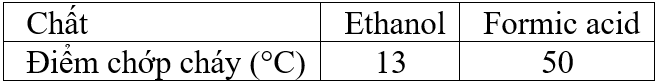 Điểm chớp cháy là nhiệt độ thấp nhất ở áp suất khí quyển mà một chất lỏng hoặc vật liệu dễ bay hơi tạo thành lượng hơi đủ để bốc cháy trong không khí khi tiếp xúc với nguồn lửa. Chất lỏng có điểm chớp cháy nhỏ hơn 37,80C được gọi là chất lỏng dễ cháy. Trong khi các chất lỏng có điểm chớp cháy trên nhiệt độ đó gọi là chất lỏng có thể gây cháy. Bảng dưới là điểm chớp cháy của ethanol và formic acid.