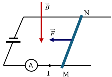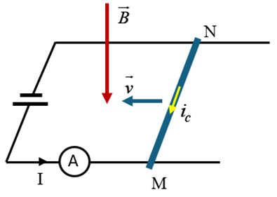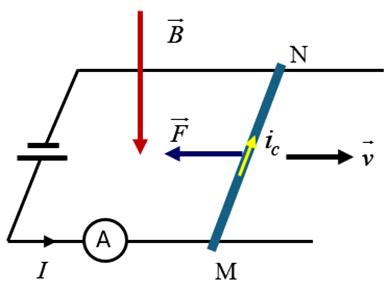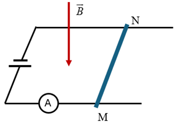 Cho mạch điện như hình vẽ, nguồn \(\xi = 1,5V;r = 0,1\Omega ;MN = l = 1m;{R_{MN}} = 2,9\Omega