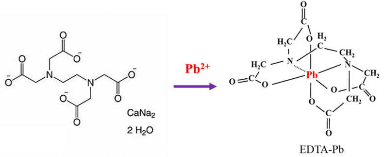 Nhiễm độc chì luôn luôn đáng lo ngại. Trong cơ thể con người, mức độ độc hại của chì có thể được giảm bớt bằng cách sử dụng phối tử EDTA để tạo phức [Pb(EDTA)]2- rất bền (hằng số bền β(Pb) = 1018,0) và được thận bài tiết. Phối tử EDTA4- được cung cấp bằng cách tiêm truyền dung dịch Na2[Ca(EDTA)]. Biết phức [Ca(EDTA)]2- tương đối kém bền (hằng số bền β(Ca) = 1010,7), sự trao đổi calcium với chì chủ yếu diễn ra trong mạch máu.
