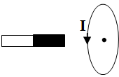 Đưa một vòng dây dẫn tròn mang dòng điện không đổi lại gần một nam châm thẳng hình vẽ. Khi thả vòng dây ra nó sẽ bị (coi như đã khử được trọng lực và các lực khác, vòng chỉ chuyển động dưới tác dụng của lực từ):