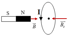 Đưa một vòng dây dẫn tròn mang dòng điện không đổi lại gần một nam châm thẳng hình vẽ. Khi