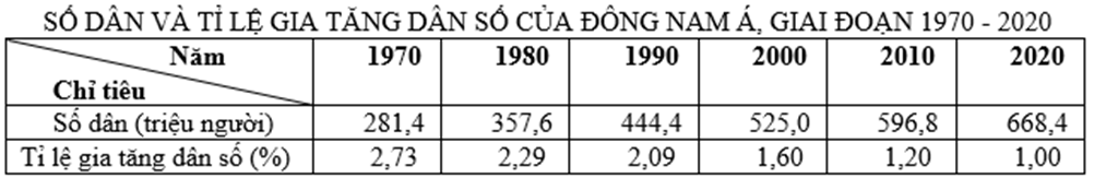 Dựa vào bảng số liệu và liên hệ kiến thức phần Khu vực Đông Nam Á.
