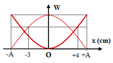 Động năng và thế năng của một vật dao động điều hòa phụ thuộc vào li độ theo đồ thị như hình vẽ. Biên độ dao động của vật là: