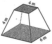 Người ta xây dựng một chân tháp bằng bê tông có dạng khối chóp cụt tứ giác đều. Cạnh đáy dưới dài \(6\;{\rm{m}}\), cạnh đáy trên dài \(4\;{\rm{m}}\), cạnh bên dài \(4\;{\rm{m}}\) (Hình 5).