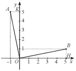 Trên mặt phẳng tọa độ \(Oxy\) cho \(A( - 1;5),\,\,B(5;1)\). Chứng minh phép quay thuận chiều \({90^0}\) tâm O biến điểm A thành điểm B.