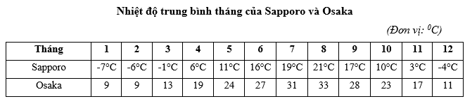 Nhiệt độ trung bình năm của Sapporo và Osaka lần lượt là