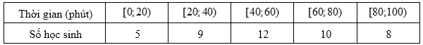 Khảo sát thời gian (phút) tập thể dục trong ngày của một số học sinh khối 11 thu được mẫu