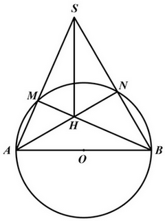 Cho đường tròn tâm O, đường kính AB và S là một điểm nằm ngoài đường tròn. Các đường thẳng SA và SB lần lượt cắt đường tròn (O) tại điểm thứ hai M,N. Gọi H là giao điểm của AN và BM. Chứng minh rằng: