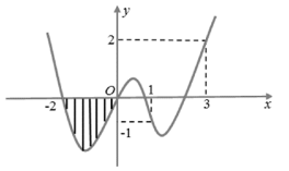 Cho hàm số \(y=f(x)\) có đạo hàm trên \(\mathbb{R}\), đồ thị hàm số \(y=f(x)\) như hình vẽ. Biết diện tích hình phằng phần sọc kẻ bằng 3 . Tính giá trị của biểu thức:
