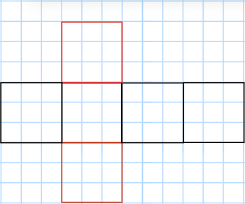 Em hãy vẽ thêm hai hình vuông để hoàn thiện hình khai triển của hình lập phương dưới đây: