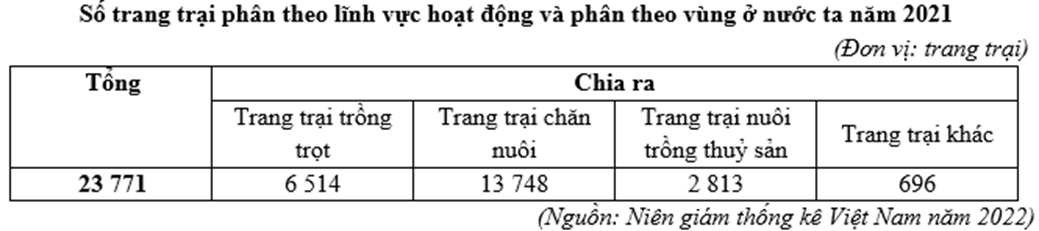 Tính tỉ trọng số lượng trang trại trồng trọt trong cơ cấu số lượng trang trại nước ta năm 2021. (làm tròn kết quả đến hàng đơn vị của %)