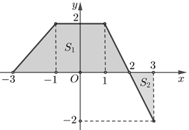 | c) \({S_1} = \int\limits_{ - 3}^{ - 1} {\left( {x + 3} \right){\rm{d}}x} + \int\limits_{ - 1}^1 {2{\rm{d}}x} + \int\limits_1^2 {\left( { - 2x + 4} \right){\rm{d}}x} \) | ||