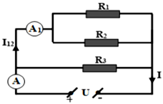 Một đoạn mạch gồm ba điện trở R1 = 9Ω, R2 = 18Ω và R3 = 24Ω được mắc vào hiệu điện thế U = 3,6V như sơ đồ hình vẽ. Điện trở tương đương của đoạn mạch là bao nhiêu \(\Omega \)?