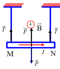 | b) Để lực căng dây treo bằng không thì cường độ dòng điện I phải từ M đến N và có độ lớn 10A. | ||