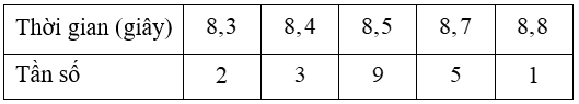 Thời gian chạy 50m của 20 học sinh được ghi lại trong bảng dưới đây: