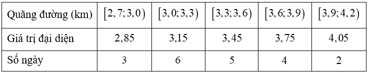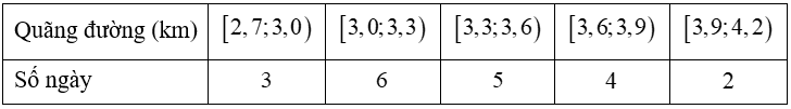 Mỗi ngày, bạn Chi đều đi bộ để rèn luyện sức khoẻ. Quãng đường đi bộ mỗi ngày (đơn vị: km) của bạn Chi được thống kê lại ở bảng sau:
