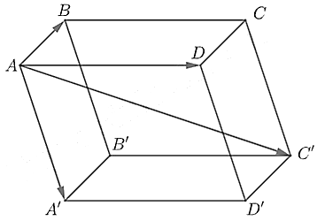 Quy tắc hình hộp: \(\overrightarrow {AB} + \overrightarrow {AD} + \overrightarrow {A{A^\prime }} = \overrightarrow {A{C^\prime }} \).