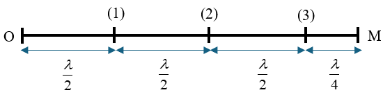 Một sóng điện từ truyền trong không khí từ O tới M trên phương truyền Ox. Tại thời điểm t, cường độ điện trường tại O triệt tiêu, tại M đạt cực đại. Giữa O và M còn có ba điểm khác mà tại thời điểm t, cường độ điện trường tại đó cũng bị triệt tiêu. Biết \(OM = 35m\). Lấy sóng điện từ này có tốc độ là \(c = {3.10^8}m/s\). Tần số của sóng điện từ này là: