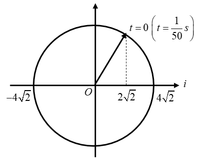 Dòng điện xoay chiều có cường độ \(i = 4\sqrt 2 .\cos \left( {100\pi t + \dfrac{\pi }{3}} \right)\left( A