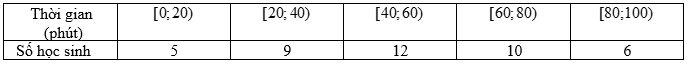 Khảo sát thời gian tập thể dục của một số học sinh khối 11 thu được mẫu số liệu