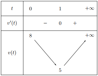 | c) Vận tốc nhỏ nhất của chất điểm là \(5\,m/s\). | ||