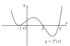 Cho hàm số đa thức \(y = f(x)\). Hàm số \(y = {f^\prime }(x)\) có đồ thị là