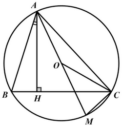 Cho tam giác ABC có ba góc nhọn, đường cao AH và nội tiếp đường tròn (O), đường kính AM. Góc BAH bằng: