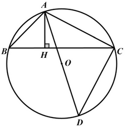 Kẻ đường kính AD và chứng minh tam giác đồng dạng.