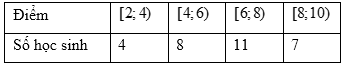 Thống kê điểm kiểm tra giữa kỳ môn Toán của 30 học sinh lớp 11C5 được ghi lại ở bảng sau