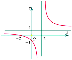 Tìm hệ số a, b, c để hàm số \(y = \dfrac{{ax + 2}}{{cx + b}}\) có đồ thị như hình vẽ sau: