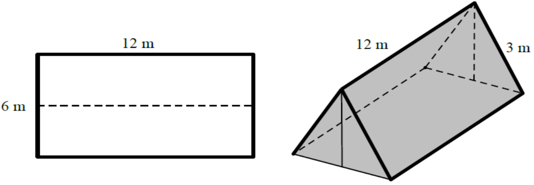 Một nhóm học sinh dựng một cái lều khi đi dã ngoại bằng cách gấp đôi tấm bạt hình chữ nhật có chiều dài 12 m, chiều rộng 6 m, sau đó dùng hai cái gậy có chiều dài bằng nhau chống theo phương thẳng đứng vào hai mép gấp (tham khảo hình vẽ).
