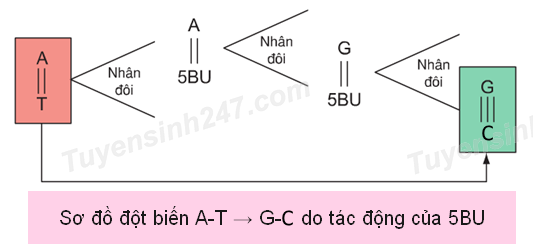 Tác nhân đột biến nào sau dậy làm thay thế cặp A-T thành cặp G-C?