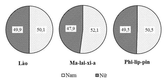 | c) Tỉ lệ dân số nữ của Phi-lip-pin cao hơn tỉ lệ dân số nữ của Lào là 0,4%. | ||